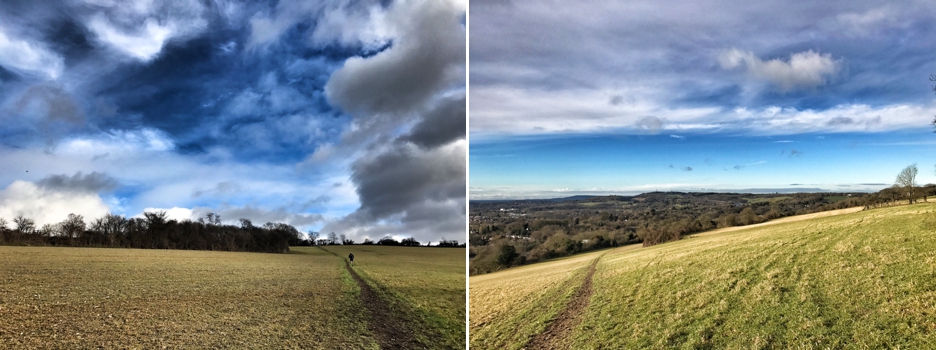 We hit 10 miles in Merstham, Myles opted to stop. To be fair he was still recovering from his first ultra, the 43 mile Country to Capital two weeks earlier. Martin was aiming for 18 miles as he was running Seville marathon in four weeks & I really wanted to get to 12 so I ran on with Martin for a while. The sun had just come out & I decided to get to the top of Merstham Hill to take in the view then I’d loop back to the town to head home.