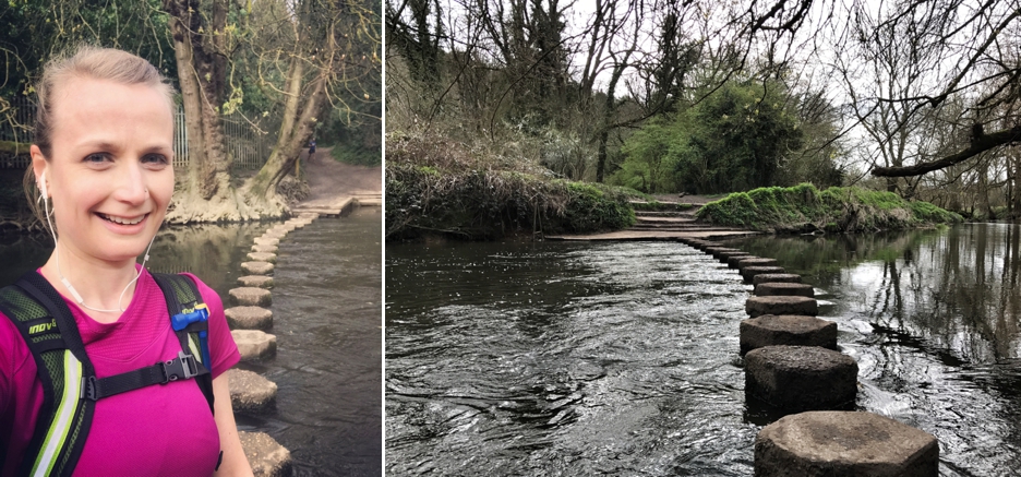 Across the road to the base of Box Hill & the famous stepping stones across the River Mole. Running solo I was a little apprehensive about crossing, I trip over thin air & had visions of myself tripping over thin air mid-stepping stones & ending up in the river… I did it though & didn’t fall in. Result!