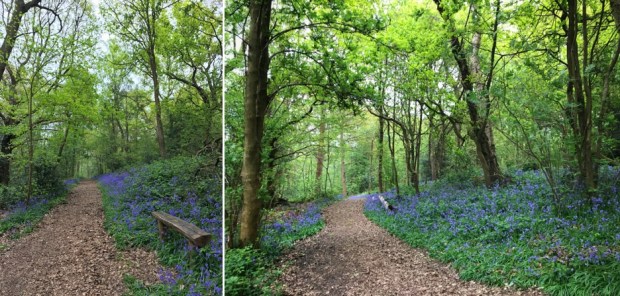 The first couple of miles were on road. I really don’t like road anymore but sometimes needs must. 2.5 miles in I arrived at Oaks Lane & the start of Croydon’s trails. Through the golf course to get to the Vanguard Way. Round Coombe Wood & up to Littleheath Wood. Discovered a sea of bluebells & was distracted by taking photos for a few minutes!