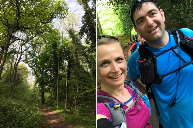 The next significant milestone was the climb to the top of Reigate Hill. It’s a beast. But like Box Hill I knew it was coming, I didn’t let it bother me, I walked, as I had on all the hills right from the start & before I knew it I was at the top & on the fairly flat section along to Reigate Viewpoint, where I knew the next check point was & the friendly face of Amy who was volunteering. I’d met Amy on the head torch run on Wimbledon Common back in December & we’d stayed in touch on Twitter & Instagram. By now my legs were really sore. It was tough. My head wanted to run, my feet wanted to walk. I was trying to stop my mind focusing on the 19 miles still left & instead focus on the fact that I had already run over 30 miles. I was more than 3/5 of the way through!