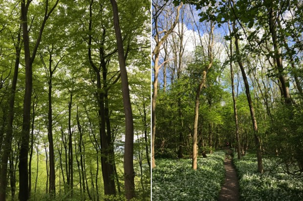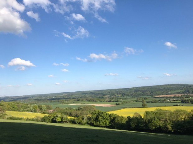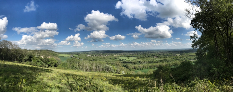 40 miles in I phoned the husband to tell him I hurt! I had ten miles to go. The bluebells that were so beautiful just two weeks earlier were dying off, but the wild garlic still grew in abundance, the woods still beautiful in the now late afternoon sun. The views continued to be spectacular, the slightly moody skies of the morning miles now replaced by vivid blue & white fluffy clouds. No matter how much I hurt, this made it all worthwhile.