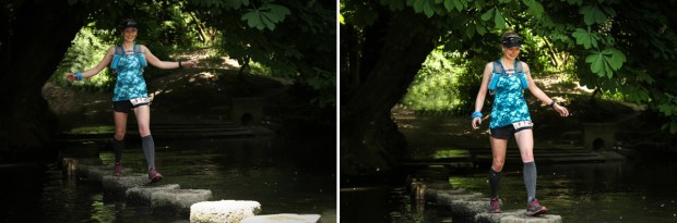I eventually started a slow walk to the stepping stones crossing the River Mole. I was filled with dread. I wasn’t even half way. I smiled again for the camera. I look happy in the photos. I’m not. A hug & words of encouragement from Stuart the photographer on other side.