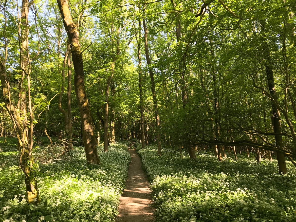 Coming into the woodland around Woldringham the bluebells, so abundant, colourful & vibrant just two short weeks ago had all but disappeared, the ground now covered in a carpet of wild garlic, it’s scent lingering in the air. I ate half a banana & was managing to keep a slow jog.
