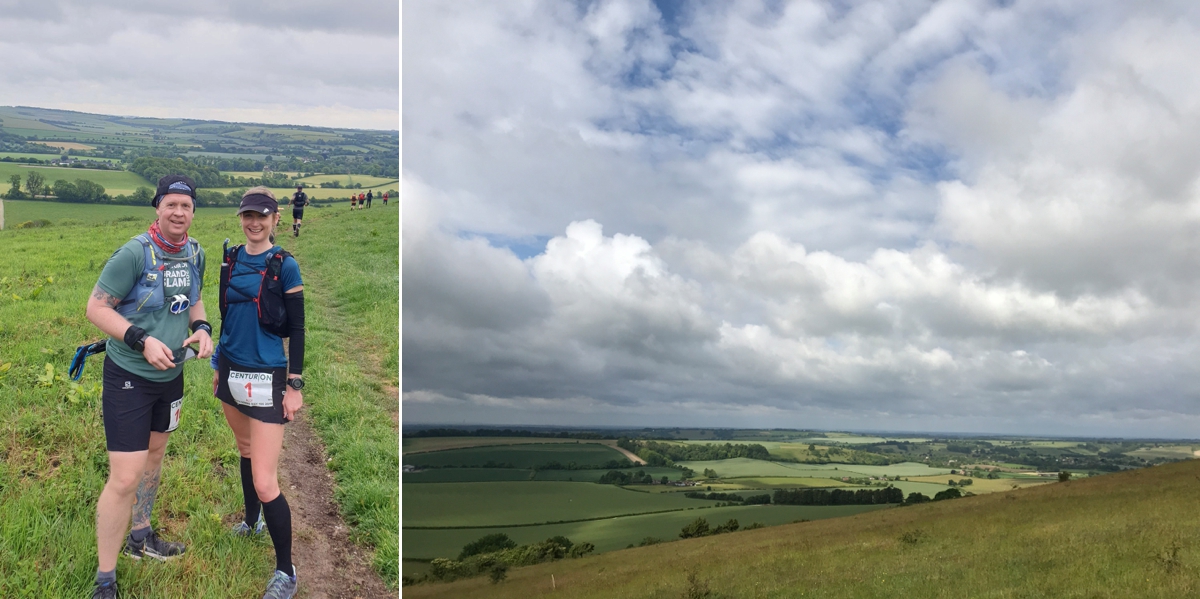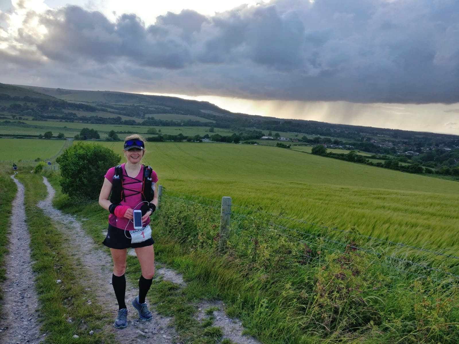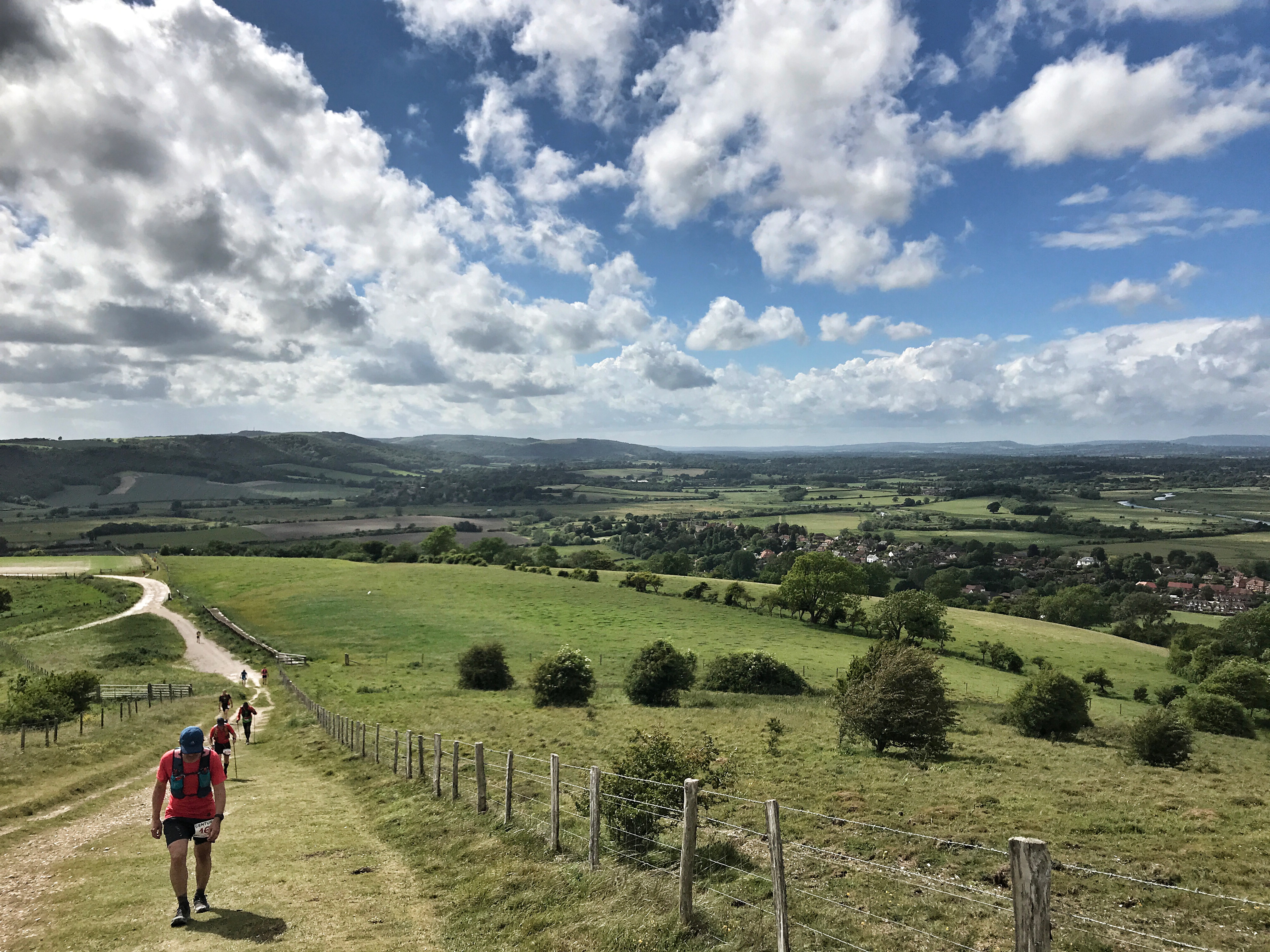 The South Downs is continuously up & down, up & down following an ancient chalk ridge. The race has over 12,000 ft of elevation over the 100 miles so it’s not just the distance we have to contend with but also the climbs. But we all know I love a hill! Much of it is open with little shelter or shade. The occasional wooded section often providing a welcome change of scenery & terrain.
