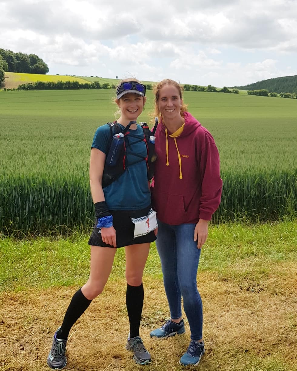 The views are once of the reasons I love the South Downs. I’m pleased that as the morning progresses the weather seems to be improving, the rain has stopped, the sun is making an appearance & there’s a tiny hint of blue sky above us. Before every race my Dad messages me & says “Run well, run strong, but don’t forget to pause & take in the view”. I always hear his words bouncing around in my head as I run, reminding me to take in my surroundings.