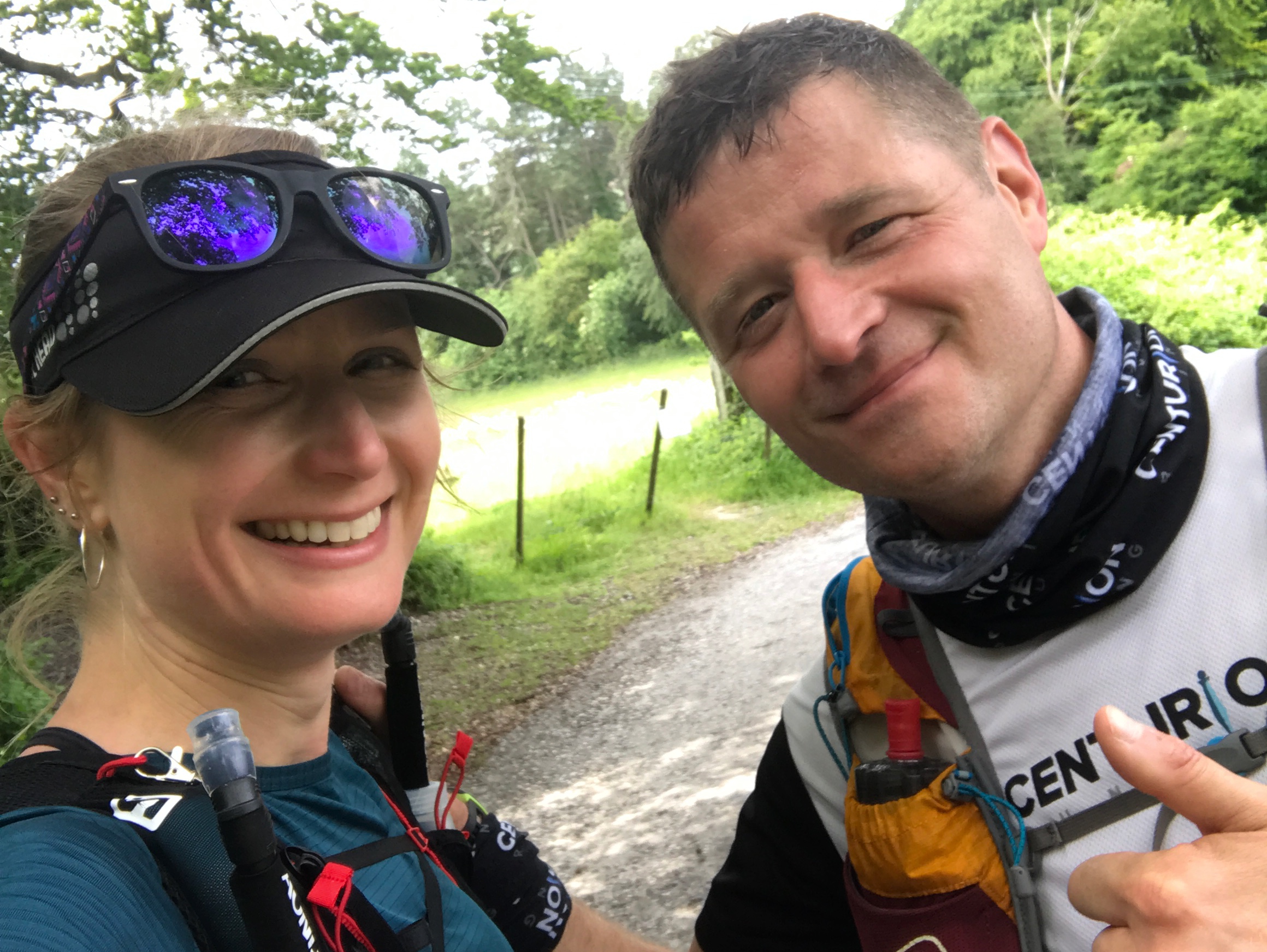 We cross into the shaded woodland of the QECP. I hear my name being called. Standing ahead of me are James & Annabel from my running club, Striders of Croydon. They had come down here for some parkrun tourism, seen the Centurion banners, realised it was the race I was doing so hung around for a while afterwards. A very happy & unexpected coincidence. I think people underestimate how much of a boost simply seeing friendly faces & a few brief words of encouragement can give during a long race.