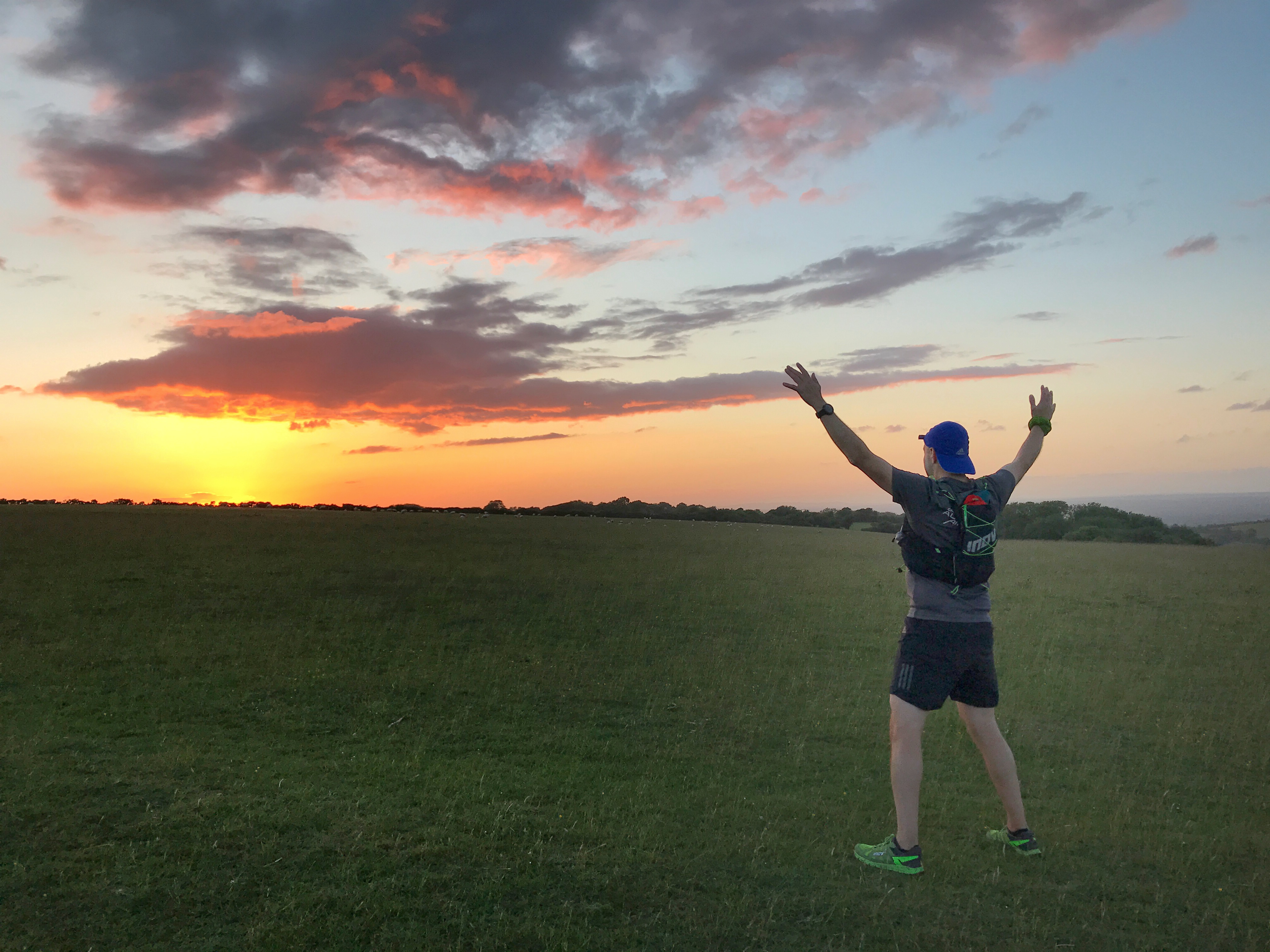 Rachel & I start the climb out of Southease. It’s another of the never ending hills of the SDW that just go on & on. And on. But it’s manageable. It’s big, it’s long but it’s not too steep. As we climb we notice a tiny slither of light on the horizon. I stop & turn to look behind me again. I am greeted with a beautiful sight that becomes one of my favourite memories from the race.