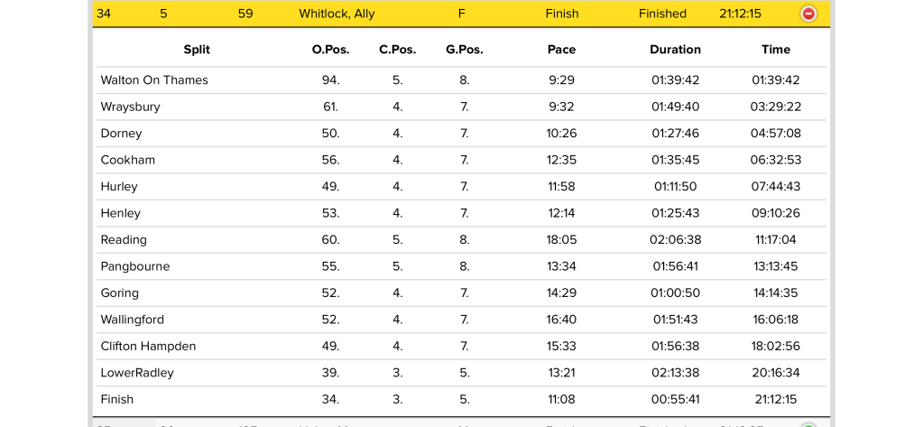 Suddenly my 21 hours 12 minutes doesn’t look quite so far off my 20-hour goal. If I can work on the things that didn’t go right on the Thames Path, I do truly believe that I have a sub-20 hour 100 mile in me.