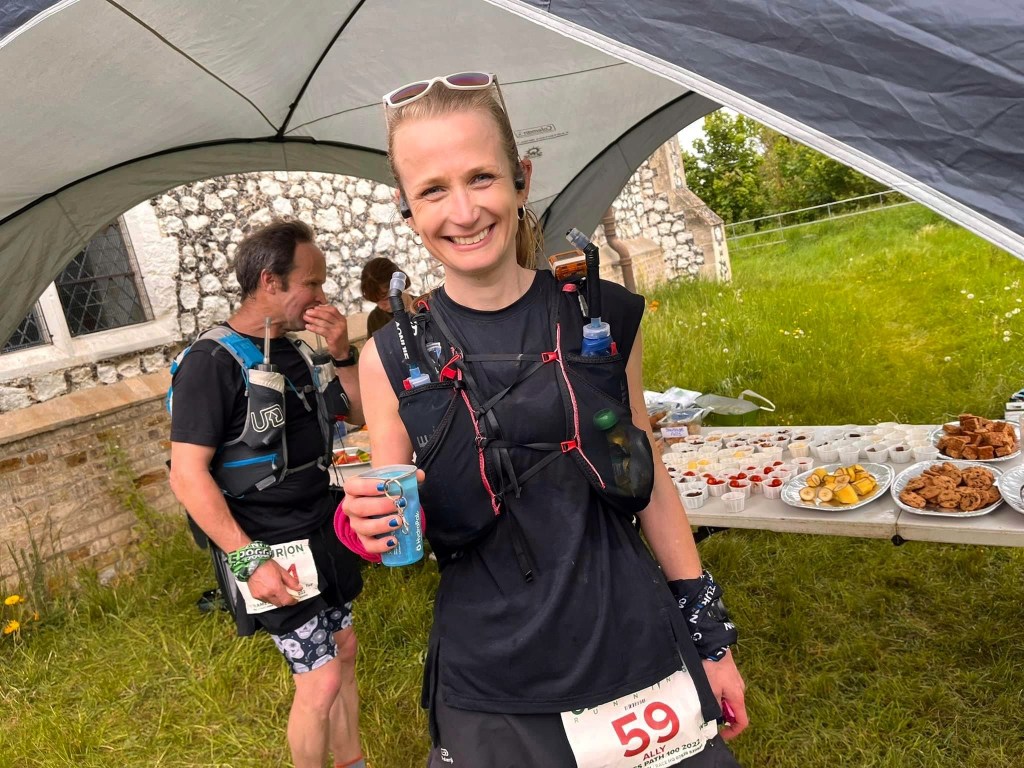 Ella had asked in the Centurion Facebook group if anyone had any special requests for CP2. I asked for bananas, knowing that they are one of the few foods I manage to eat during an ultra. As soon as I walk into Wraysbury she calls out “Ally, I have your banana!”.