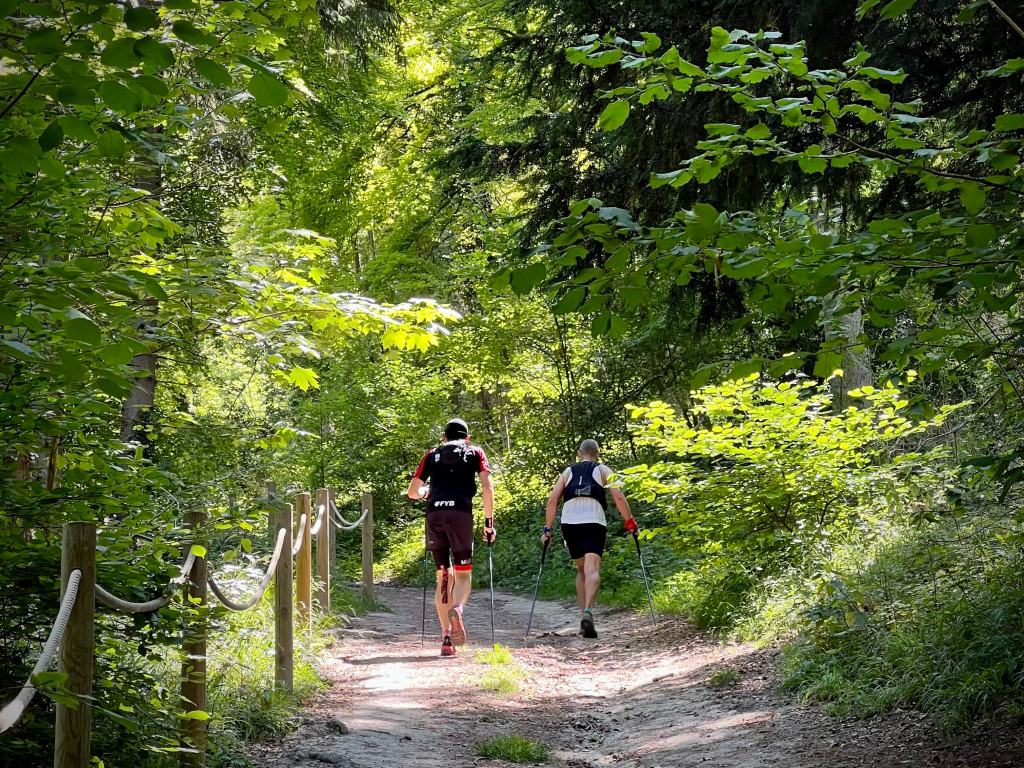 Having negotiated 1hr 45 of running time I threw myself at lightning speed around the woods. It had been a year since my last foray in the forest & that was in the dark of the Night 50km. It all came flooding back. Every twist, every turn. The fallen trees to jump over, the roots to avoid. The hidden turns, the steep climbs. I’d loaded the route onto my watch but I barely needed to glance at it as my feet remembered exactly where to go.