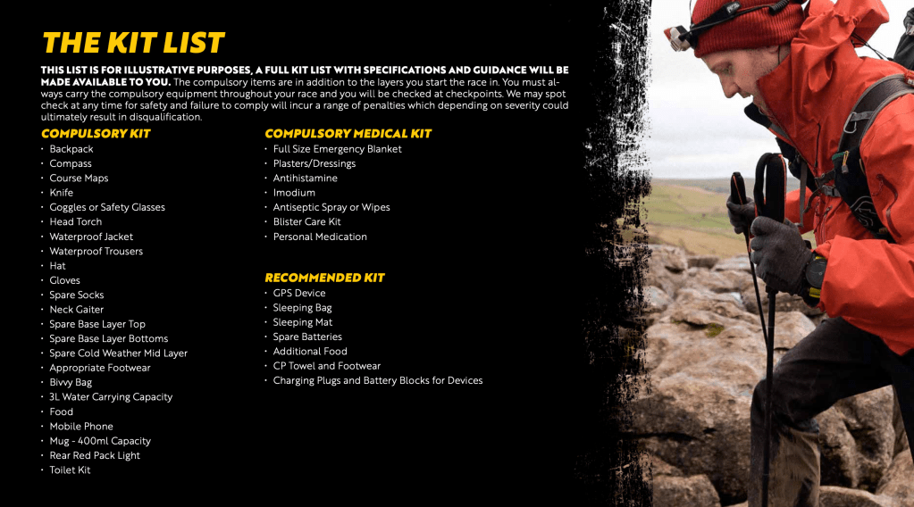 It’s the most stringent kit check I have ever experienced for the most detailed & comprehensive mandatory kit list I have ever been given. But I think back to my brief foray on the Pennine Way last August when even in the middle of summer, bad weather made it feel like winter & I know that every item on the kit list is there for my safety. (Except perhaps the shit shovel… That is probably for other people’s safety…). I only hope that I don’t actually need to use any of it, but equally, I know that if anything should go wrong, I am carrying the right equipment to be able to look after myself & keep myself safe.