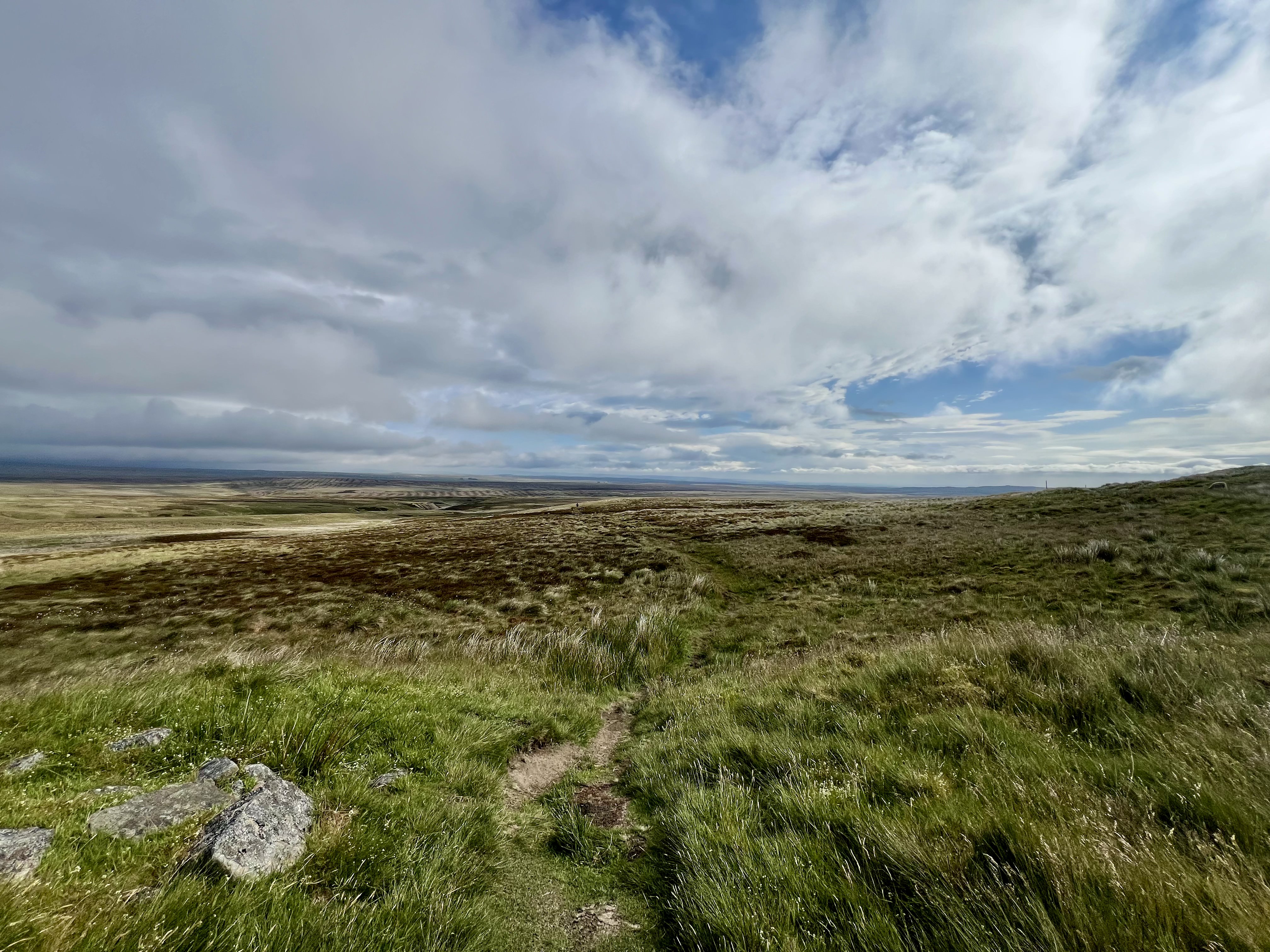 Whilst ambling up the gentle climb to Cotherstone Moor, I realise I was a little too quick with the suncream.