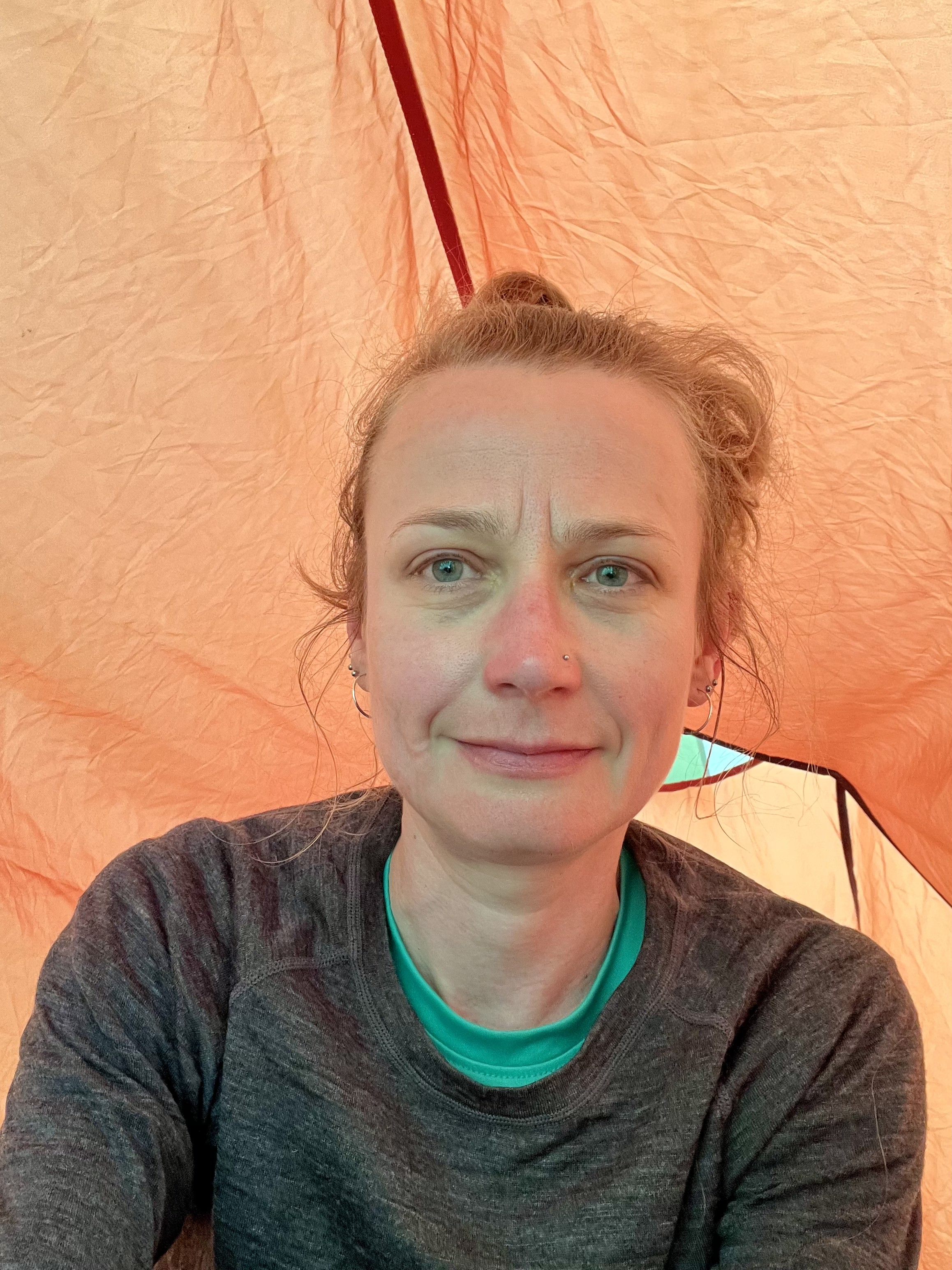 After about an hour of tossing & turning, I accept defeat. There’s no point just lying here. I clear the tent, shoving my sleeping bag & last few bits back into my drop bag & wander back to the dining room.
